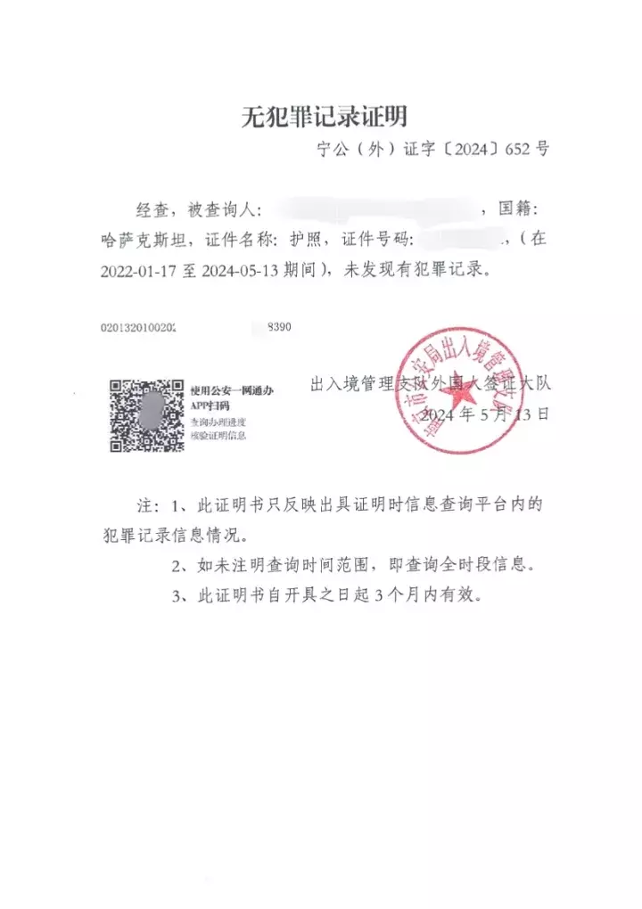 Reisepass — Scan aller Seiten, einschließlich:Wenn eine Privatperson innerhalb eines Kalenderjahres mehr als dreimal (nicht einschließlich) einen Antrag auf Ausstellung der Bescheinigung stellt, muss sie entsprechende Nachweise vorlegen, die die rechtliche Grundlage für die Nutzung des Führungszeugnisses bestätigen. In anderen besonderen Fällen kann eine Beratung über die Hotline der Staatlichen Einwanderungsbehörde der VR China unter der Telefonnummer 12367 eingeholt werden.